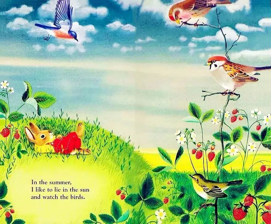 In the summer, I like to lie in the sun and watch the birds.