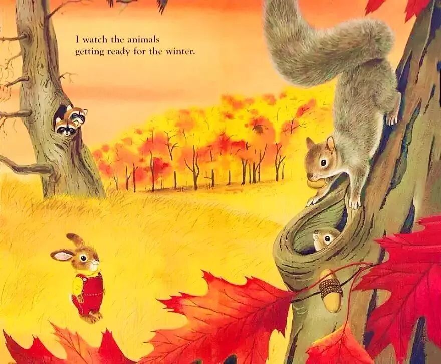 我看到动物们忙着准备过冬。